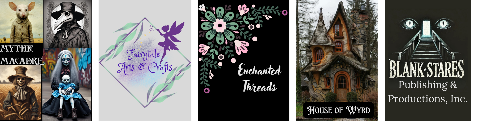 Here you’ll find the haunted beauty of Mythic Macabre, the whimsy and wonder of Fairytale Arts & Crafts, the creative threads of Enchanted Threads, the mystical teachings of House of Wyrd, and the cinematic visions of Blank Stares Productions.